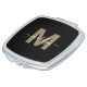 Personalized Custom Create Your Own Black Gold Initial Name Monogram Compact Mirror. Add a touch of glam to your daily routine with this elegant compact mirror. Featuring a flat gold-colored initial (non-shimmer) and a sleek black script name, it creates a personalized, sophisticated design perfect for any occasion. Whether you're touching up your makeup on the go or adding a glamorous accessory to your purse, this compact mirror is as stylish as it is functional. A thoughtful gift for birthdays, holidays, or special occasions like a bridal shower gift for a bride or for the bridesmaids or guests, this monogrammed mirror is a chic and practical keepsake for anyone who loves elegant and unique accessories.