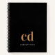 A classic chic black background. Personalize and add your monogram initials and your name. Golden and white letters. Modern, trendy and simple.