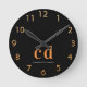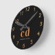 Personalize and add your monogram letters, initials and name. A classic chic black background color. White and golden colored letters. Golden clock numbers.