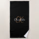 Black gold monogram initials name script beach towel