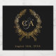 Personalize and add your monogram initials and the wedding date. Decorated with a classic faux gold colored wreath. Black background.