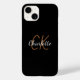 A classic black background. Personalize and add a name and monogram initials. The name is written with a modern hand lettered style script. White and golden letters.