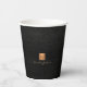 Luxury monogrammed paper cups with a black leather look background and a faux gold copper metallic brushed square with elegant script signature name and monogram initials. ++++++++++++++ Easy to personalize creating your own logo with your business or personal initials and name. +++++++++++++ Could be an elegant personalized business corporate disposable drinkware for a networking event or for office guests or a modern branding essential for your office bar.