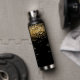 Sophisticated Black Background: The sleek black backdrop offers a timeless and elegant look, making this water bottle a fashionable choice for any occasion.