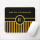 Personalised mouse mat art deco style with custom text and initials.