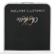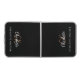 A black background. Personalize and add your first name, monogram initials and full name. White and golden text. The name is written with a modern hand lettered style script.