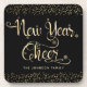 Black Gold New Year Cheer Script Snowflake Glitter Beverage Coaster