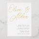 A beautiful typography based wedding invitation featuring your names in oversized gold foil script lettering at the top. Personalize with your wedding details in classic serif lettering aligned at the lower right. Our Ash colorway makes a classic statement with soft black and rich gold foil lettering on a crisp white background.