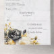 This All-in-One wedding invitation showcases the timeless beauty of black and gold peonies against a stunning gray marbled background. The intricate detailing and the luxurious color palette create an atmosphere of grandeur and romance, making your wedding invitation a true work of art. The All-in-One wedding invitations are both beautiful and practical by combining the wedding invitation with an easy to remove perforated RSVP postcard. They are also quick and easy to prepare for mailing. Simply address the invitation, fold the back flap and seal with the included clear stickers. Once your guests receive the pre-addressed invitation they simply tear off the perforated RSVP card and drop it in the mail.