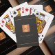Trendy luxury signature script 2 letters monogrammed playing cards featuring a faux gold copper metallic glitter square and stripes over a leather texture look (PRINTED) background. Personalized with your name and monogram letter initials. It can be an elegant custom personal or family gift for a birthday, housewarming, retirement, wedding, holiday, anniversary, or any other occasion.