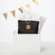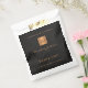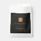 Luxury elegant black leather look thank you favor bag with a gold glitter monogrammed square and personalized name signature.