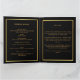 An elegant 4-page program. A black background, a faux gold frame and space for your photo on the front. Personalize and add name, dates and your text.