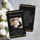 Black background, a faux gold frame and space for your photo. Personalize and add name, dates and your text and prayer.