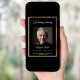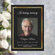 An elegant 2-page program. A black background, a faux gold frame, and space for a photo. Personalize and add name, dates and your text.