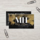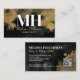 Chic Trendy Makeup Artist Black Gold Monogram Business Card. You can change it to any business you want—makeup artist, lash specialist, hair stylist, or even something like marketing, consulting, and more! Featuring a black background with faux gold watercolor or alcohol ink (a touch of a marble feel) as the backdrop, paired with white bold typography and an elegant script font for the details. The back includes space for a QR code so customers can quickly connect to your website. A trendy and chic look that stays professional and elegant.