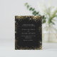 A modern, elegant wedding invitation. Black background decorated with faux gold glitter sparkles. Personalize and add your names and wedding details. White colored letters.