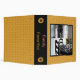 Recipe organizer with retro feel for all your family favorites. Black and white image of kitchen table with selective coloring on vase of sunflowers and an all-over retro pattern.