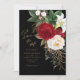Beautiful watercolor floral bouquet in rich reds and whites, includes gorgeous peonies, lilies, lush greenery and baby's breath. The bouquet is set over an elegant black background, with a matching canvas on the back. The details are done with simple elegant gold calligraphy script. The bride and groom's monograms are on the back.