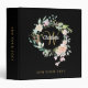 Black Gold Roses Floral Monogram Office School 3 Ring Binder