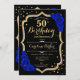 Black Gold Royal Blue Photo 50th Birthday Invitation
