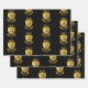 Black & Gold Royal Emblem Shield Monogram Wrapping Paper Sheets