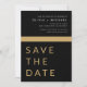 Wedding Elegant Black and Gold Save the Date Cards. The Save the Date cards contain a modern hand lettered cursive script typography that are elegant, simple and modern to use after you minimalist simple wedding day celebration.