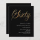 A modern, stylish invitation for a 60th birthday party for both him and her. Black background and the word Sixty written with large faux gold letters. Personalize and add a name and party details.