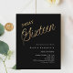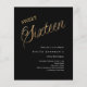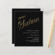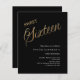 A modern Sweet 16 invitation. Classic black background and the word Sixteen written with large letters in faux gold. Personalize and add a name and party details. White text.