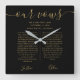 Black Gold Script His And Hers Wedding Vows Square Wall Clock
