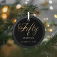 Fifty written with a faux gold script. Personalize and add a name and date. White text.