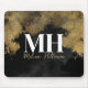 Chic Trendy Black and Gold Monogram Mousepad. This sleek mousepad is perfect for both office and school use, adding a touch of sophistication to any workspace. Ideal for businesses like marketing, consulting, or a personalized home office, it features a black background with faux gold watercolor or marble-inspired accents. The bold white typography combined with elegant script fonts creates a trendy yet professional look. This mousepad offers comfort and style, making it a chic, modern, and polished addition to any desk! Black Gold Script Name Monogram Mouse Pad.