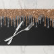 A black background with faux gold and silver glitter drip, paint dripping look. For your business, company, school or as party table placemat.