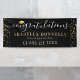 Simple graduation banner featuring a stylish black background that can be changed to any color, gold stars, faux gold foil mortarboard cap, and a modern text template that is easy to personalize.