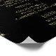 Wedding Menu. Gold Bar & Black Starlights Wedding. Matching Products available. ⭐This Product is 100% Customizable. *****Click on CUSTOMIZE BUTTON to add, delete, move, resize, changed around, rotate, etc...any of the graphics or text or use the fill in boxes. 99% of my designs in my store are done in layers. This makes it easy for you to "resize" and move the graphics and text around so that it will fit each product perfectly. ⭐ (Please be sure to resize or move graphics if needed before ordering) You can also "TRANSFER DESIGN" on other Zazzle products and adjust the design to fit most of Zazzle items. (button is down on the right side of the page) Some of the text graphics have ready to fill in the box(es) or you can Click on the CUSTOMIZE button to add, move, delete, resize or change any of the font or graphics. The design is made with high resolution vector and/or digital graphics for a professional print. ⭐NOTE: (THIS IS A PRINT. All zazzle product designs are "prints" unless otherwise stated under "About This Product" area) The design will be printed EXACTLY like you see it on the screen and on the product...so please make sure when you do your changes on the resizing of any of the graphics or text that it fits in the areas correctly and that your spelling and wording is how you like it to be in size, color and font. If you have any questions about the "DESIGN ONLY" or need help with the design please contact ME directly at *siggyscott@comcast.net* or visit my store link: https://www.zazzle.com/store/magical_weddings (Copy and Paste) I'll be happy to help. ⭐ALL OTHER QUESTIONS ( ex: shipping, refunds, the printing is not clear, the product itself, etc...)PLEASE CONTACT ZAZZLE or the MAKER of the product⭐DIRECTLY⭐. Thank you for the support and stopping by my store - Magical_Weddings. © Donna Siegrist ⭐⭐⭐ ZAZZLE promises 100% satisfaction. If you don't absolutely love it, Zazzle will take it back! ⭐⭐⭐ 1-888-8ZAZZLE (1-888-892-9953) Phone hours: Mon - Fri: 9AM - 5PM PT (12PM - 8PM ET)