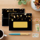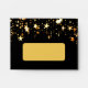 Under the stars theme. Inside: A chic black background and faux gold stars. Outside: Black background and golden stars. Personalize and add your name and address. The name is written with a modern and trendy handlettered style script. Golden colored letters. Perfect for birthday party invitations, save the date and thank you cards!