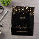 A stylish black colored background with faux gold stars dripping, drips. Personalize and add a year, name, and title. A planner for organizing business clients, to do lists, or your daily life. The name is written with a large trendy hand lettered script with swashes. To keep the swashes only delete the sample name, leave the spaces or emoji's in front and after the name.