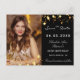 On front: Add a vertical size photo. A classic black background color, decorated with faux gold stars. Personalize and add a name and details. White letters. For both him and her.