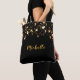 Black gold stars elegant name tote bag