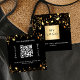 A classic black background. Decorated with faux gold stars. Personalize and add your business name, your own qr code to your website, and a text. With the text: Follow us!