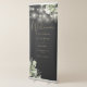 This elegant black and gold wedding welcome retractable banner features pretty string lights with floral greenery and can be personalized with your details in chic gold typography. Designed by Thisisnotme©