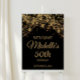 Black 50th birthday foam core easel board "Welcome" sign with gold glitter and string lights. Personalized with the name and age of the guest of honor. This board comes in a variety of sizes and can be customized for anyone of any age. Contact me for assistance with your customizations or to request additional matching or coordinating Zazzle products for your party.