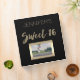 This binder is designed with a black background and faux gold glitter patterns. Personalize with a name or text of your choice and customize with your own photo! Makes a great binder for photos or memories of your Sweet Sixteen.