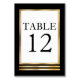 Simple, elegant and modern black and white with gold tone (printed) border and black text table number card design. Original design by Holiday Hearts Designs (all rights reserved).