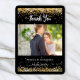 A modern wedding Thank You photo card. A black background decorated with faux gold glitter, sparkles. Personalize and add your photo and thank you note.