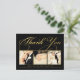 Gorgeous faux gold foil typography on the front of this designer postcard which you can upload into with 3 of your own engagement/wedding photo portraits. Easily and quickly personalize this designer professionally printed thank you postcard here and now by just typing over the example text and adding your own photographs. Elegant, chic, simple and classy gold script/cursive typography.