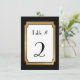 Elegant custom wedding reception flat card table number. Made in a handsome Art Deco style black frame around a thinner gold tone frame that borders the white text area. Black text is ready to personalize for each table at your wedding.