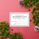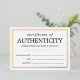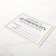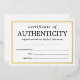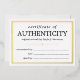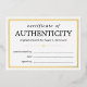 Elegant and minimalist certificate of authenticity in black, gold, and white to which you can add your name or business name.