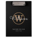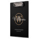 Modern elegant black gold and white script name monogram clipboard. Personalize the name and monogram initial to create your own unique design. Designed by Thisisnotme©