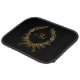 For couples. Black background, a faux gold wreath and golden text. Personalize and add your monogram initials, your family name's initial in the middle.