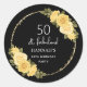 Black Gold & Yellow Floral 50th Birthday Classic Round Sticker